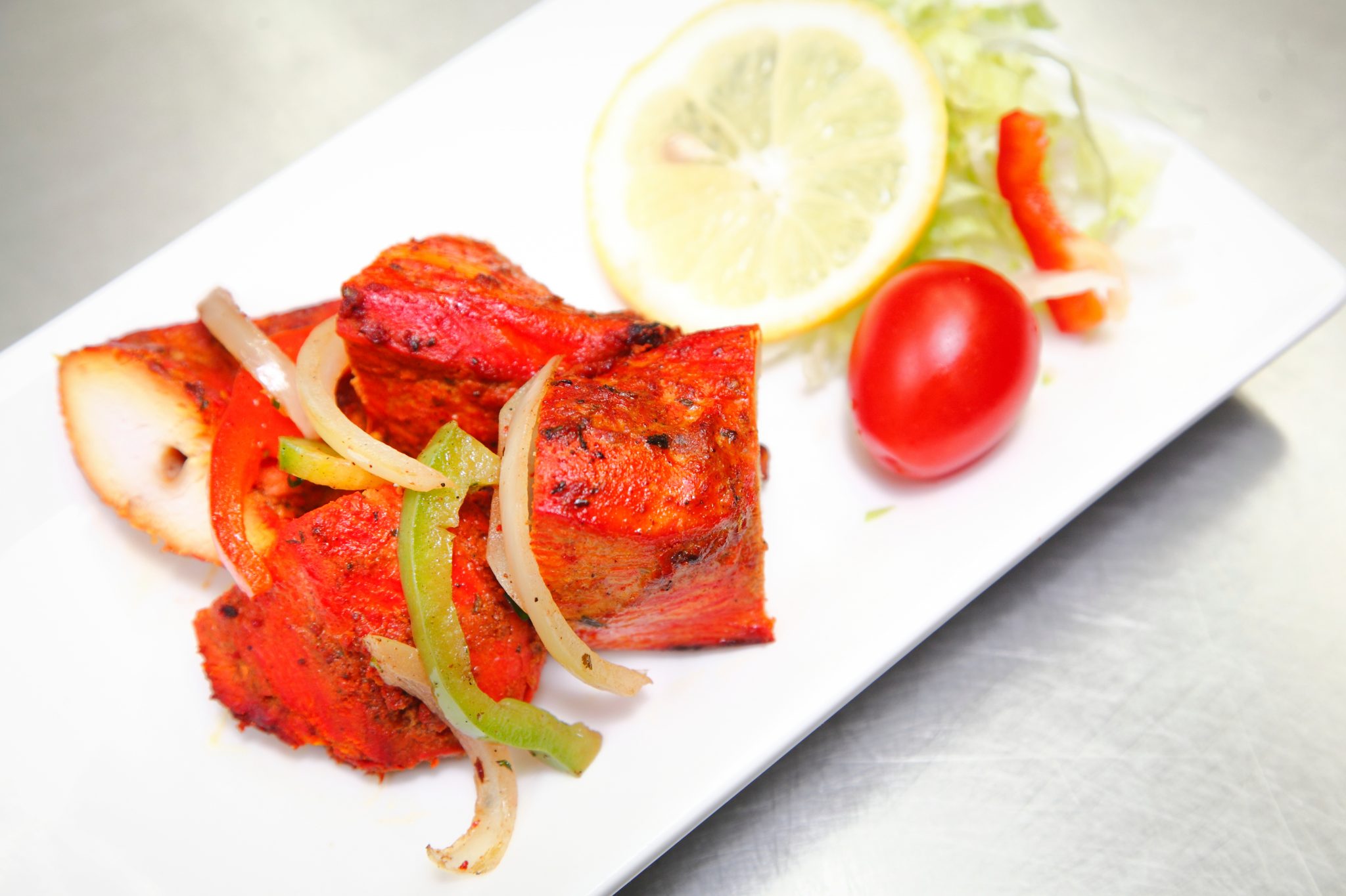 Tender pieces of Chicken or Lamb cooked in a tandoor oven. Served with fried onions and coriander