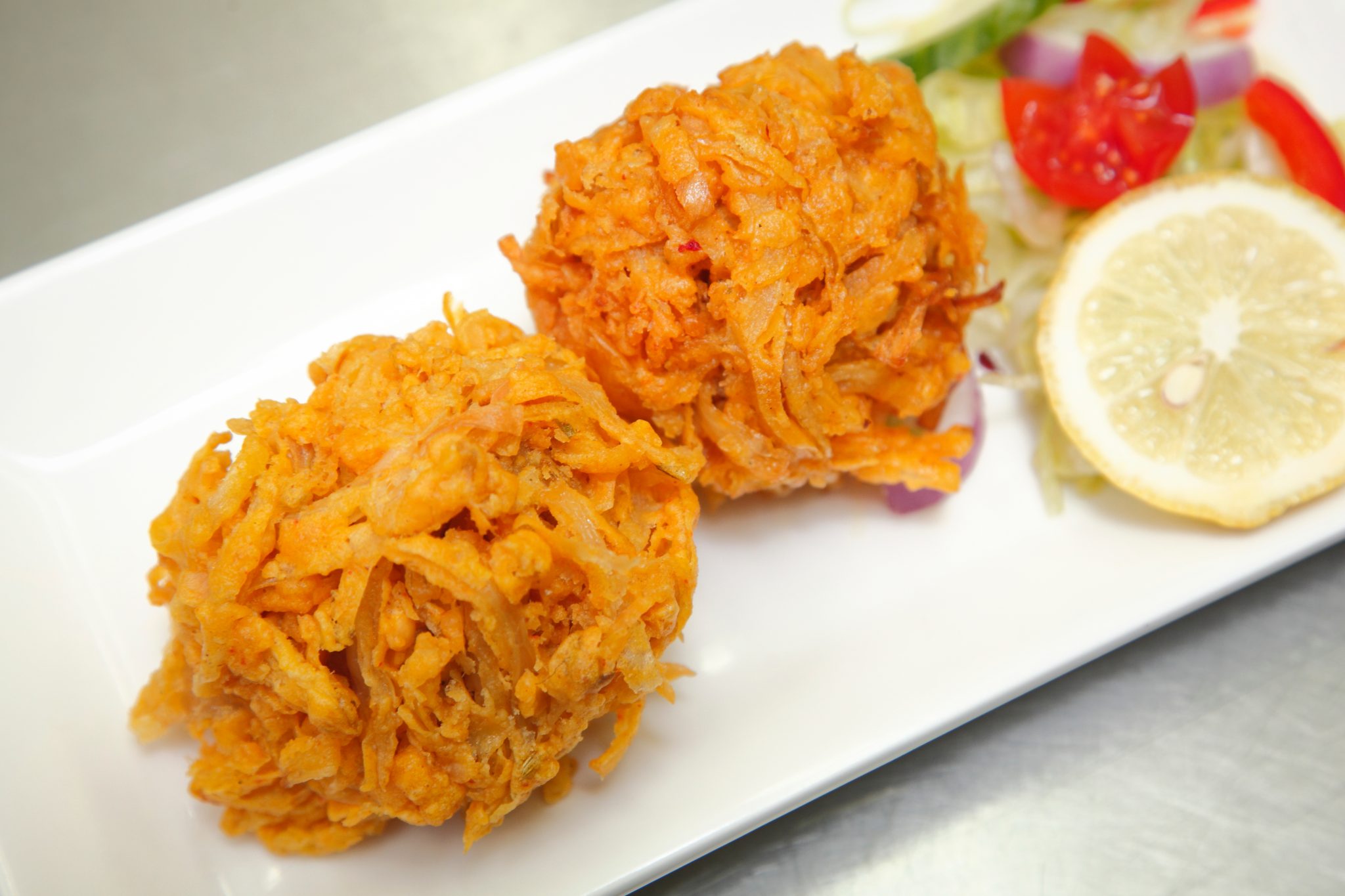 Thinly sliced onions mixed with aromatic spices, enveloped in a light chickpea flour batter, and fried to a perfect golden crispness.